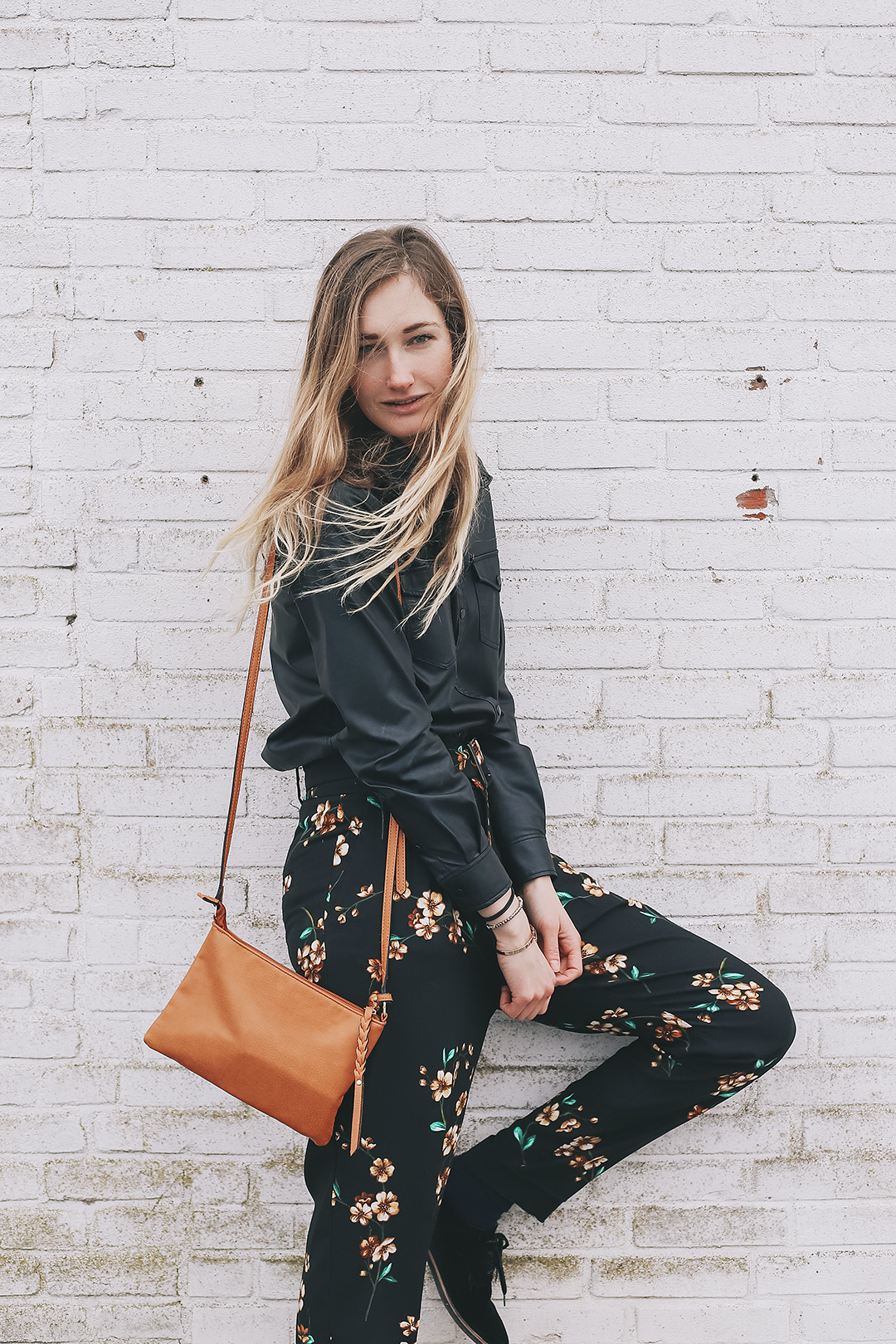 Eva More floral in winter Blouse | Mango Pants | Mango Bag | Defshop Bracelet | Ursul paris shoes | vanHaren